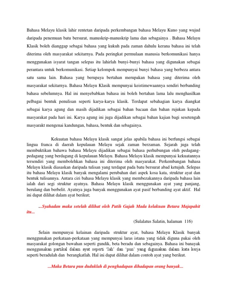Frasa asas terhadap bahasa melayu klasik ialah perkataan klasik itu sendiri. View Bahasa Melayu Klasik 1992-2000pdf from STPM 946 at Sekolah Menengah King George V. Tukarkan ayat bahasa Melayu klasik di bawah kepada ayat bahasa Melayu standard.